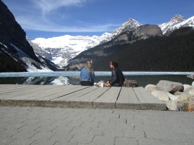 In Lake Louise angekommen ist doch dann tatsächlich der See Louise zugefroren?! Zumindest 1/4 war geschmolzen, hat dem ganzen wunderschönen Anblick aber wirklich keinen Abbruch getan.