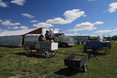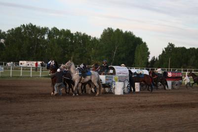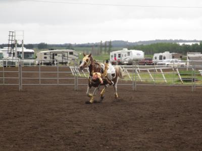 seither bin ich zu drei weiteren Rennen gefahren und liebe den ganzen Aufwand und die Aufregung. Noch mehr Aufregung beschert mir die Tatsache, dass wir vom 3. bis 12. Juli beim Calgary Stampede 9 Tage rennen werden. Calgary Stempede ist das groesste aller Outdoor Western Festivals auf der Erde, es gibt kein groesseres Spektakel in der ganzen weiten Welt. Rodeo, Bullenreiten, Kaelber mit dem Lasso fangen und Chuckwagons. 9 Tage Reizueberflutung vom feinsten. Basistickets fuer diese Attraktion fangen bei 250 Dollar an. Und ich meine Freunde haben einen Pass fuer ALLES. Ich werde hinter den Kullissen dieses Wahnsinns arbeiten und wahrscheinlich eine lange Woche erleben, die ich nie vergessen werde. Das ganze wird natuerlich live uebertragen auf CBC. wer kann sollte bei den Chuckwagons mal reinschauen und meinen Boss ueber die Rennstrecke fliegen sehen und natuerlich mich am Tor fuer die Ausreiter sehen. Hinter dem Wagen muessen 2 Reiter mit Pferd hinterher reiten und ich bringen mit Cassedy, Shanes Tochter, die Pferde zur Rennstrecke. Lohnt sich also mal reinzuschalten.......