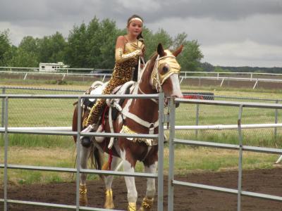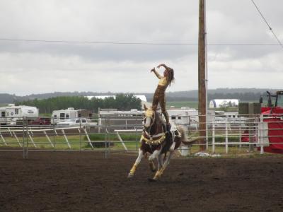 Neben den Chuckwagonrennen gibt es meistens auch Rodeo oder Kunstreiten, bzw. Trickreiten bei den Veranstaltungen. Shanes Nichte Paynton ist eine der begabtesten Trickreiterinnen ihrer Altersgruppe in Kanada.
