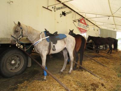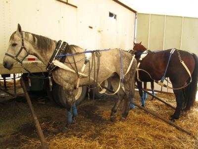 In der Vorbereitung sieht das ganze dann so aus: im Stall wird den Wagenferden das Geschirr angelegt und die Ausreitpferde werde gesattelt.