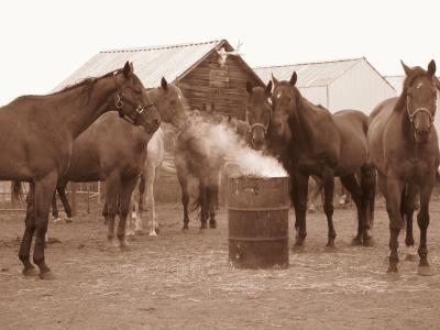 Nach jedem Rennen gehts für 2 oder 3 Tage zurück auf die Farm, sodass die Pferde zwischen dem ganzen Trubel und Stress auch mal entspannen können. In der Sommerzeit sind die Pferdefliegen und Mücken extrem lästig, entspannt wird also gemeinschaftlich an der Rauchtonne.
